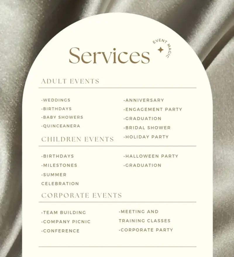 At Haylee's Event Magic, we specialize in turning your dream event into a reality. With our attention to detail and creative flair, we make sure every event is truly magical!